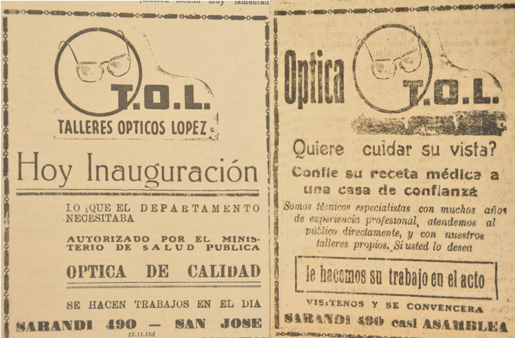 Óptica TOL (Talleres Ópticos López) fundada por el Sr Generoso López, experto en la materia tras haber trabajado varios años en la capital para las casas de ópticas más importantes.Con el afán de progresar se instala en diciembre de 1948 en la ciudad de San José, una óptica moderna con las instalaciones necesarias para dar cumplimiento a los trabajos más delicados en la materia, a un nivel de las ópticas de la capital.